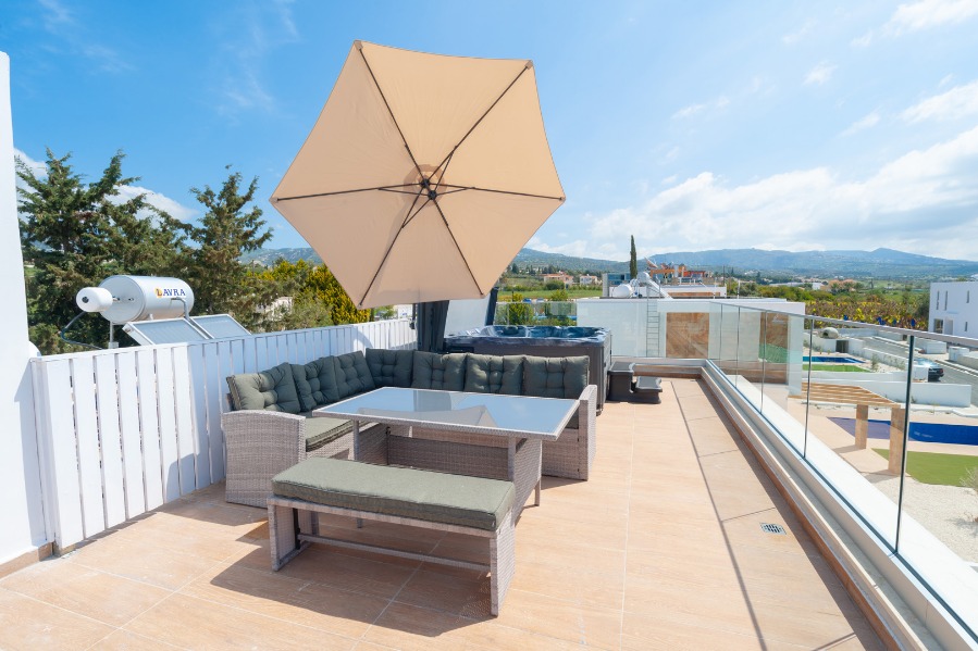 A luxurious four bedroom en-suite villa with private pool and private hot tub Jacuzzi, located just minutes away from the famous awarded sandy beach of Coral bay and the bustling coastline of Sea caves.