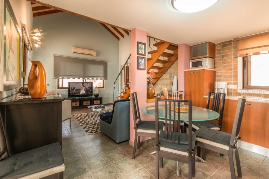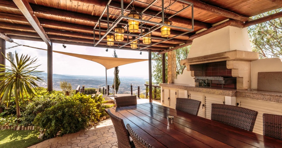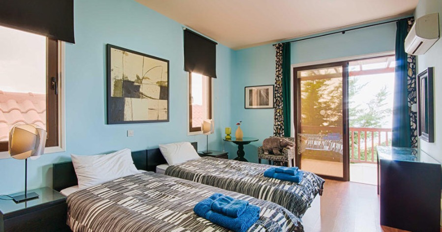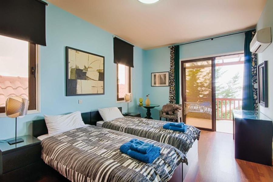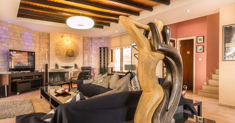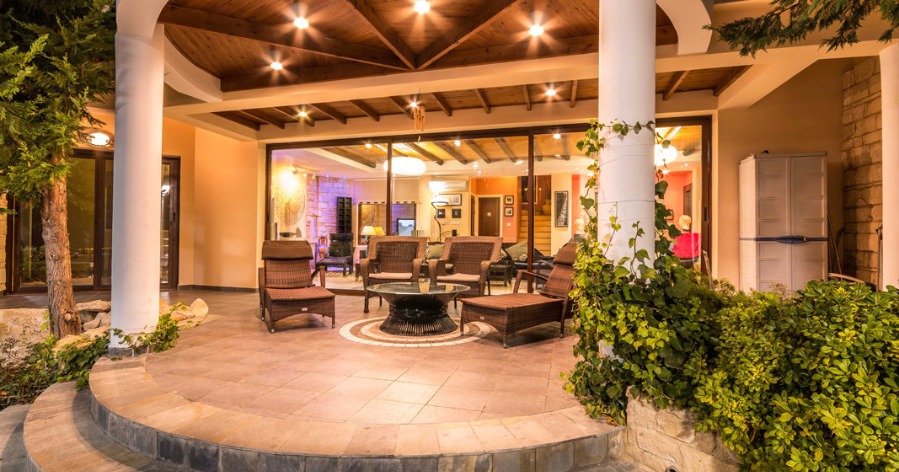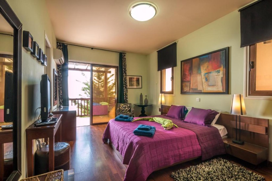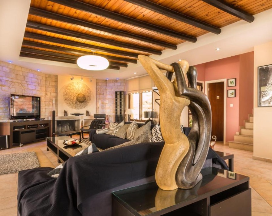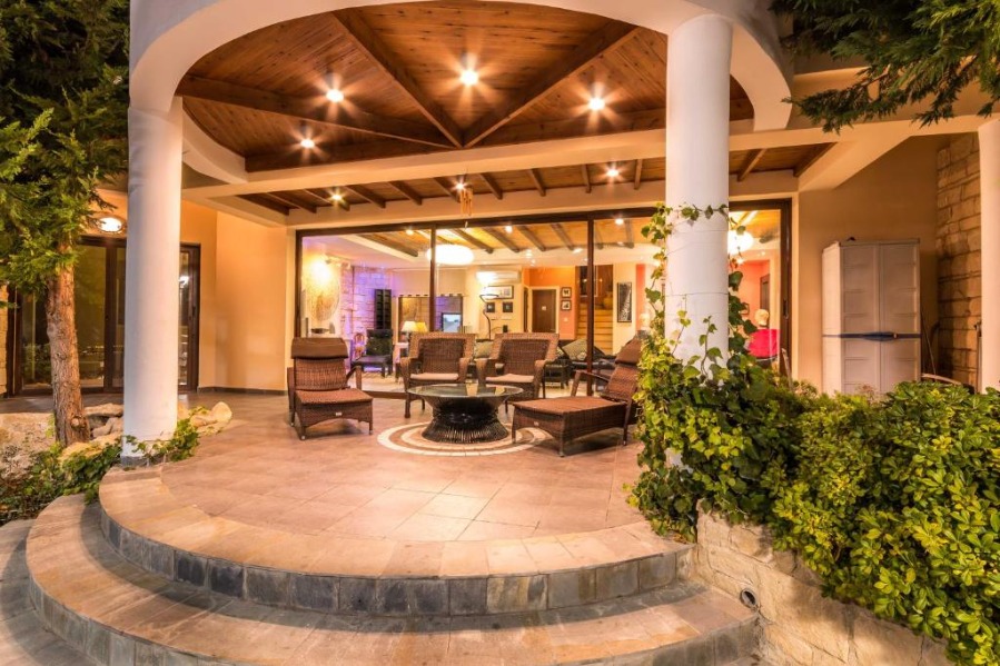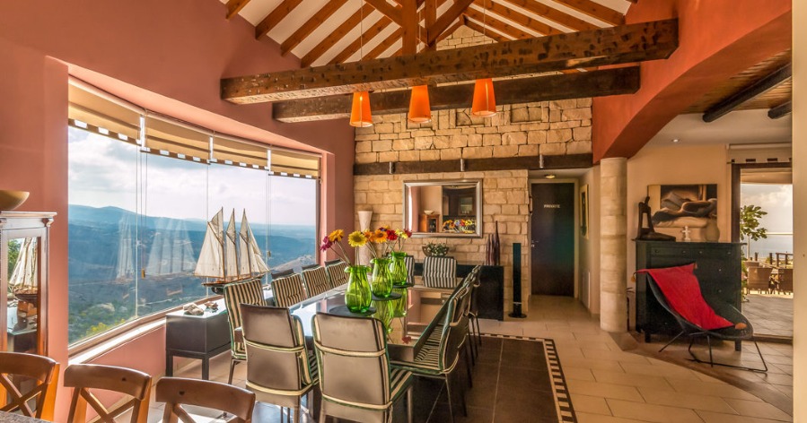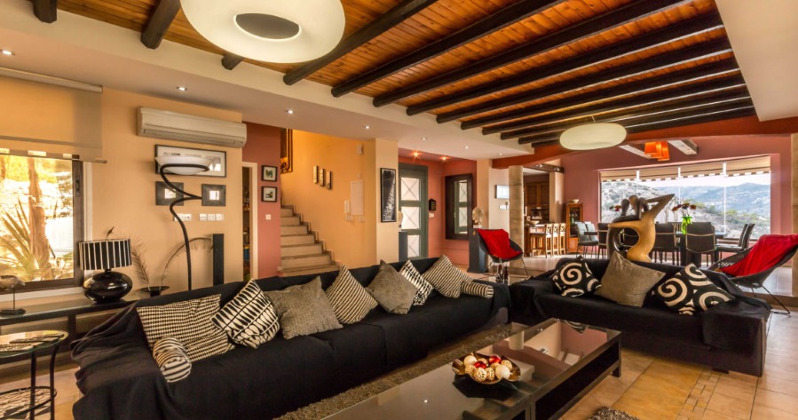 Panorama Villa is located in southwest Cyprus, on the edge of the beautiful Pikni Pine Forest in the Paphos-Peyia Hills. Adjacent to its sister villa Oceania within a luxurious private area (see map), Panorama villa is a rustic building furnished in a contemporary style, designed by the villa owner, a Cypriot architect and inspired by the cosy decor of “France de Lion” houses. The interior and exterior decorations use natural materials such as redwood, decorative stone, and rock wall textures. These natural elements give a comfortable feel and welcoming environment.