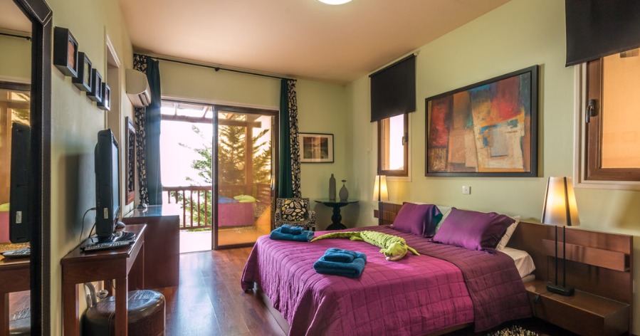 The spacious master bedroom, ideal accommodation for a bride and groom, is presented as the panorama honeymoon suite since it has wondrous sea views.
